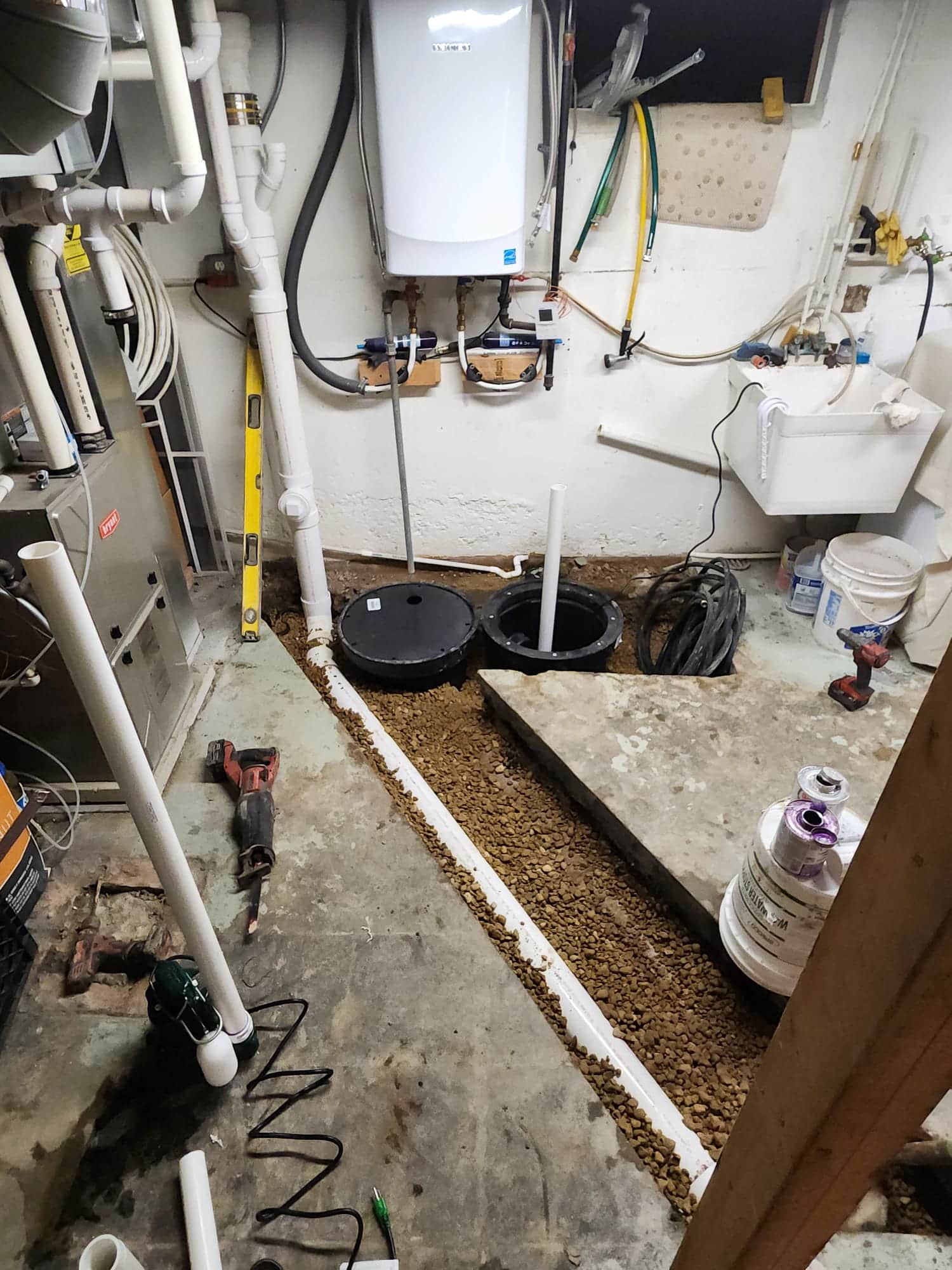 - Overhead sewer system installation